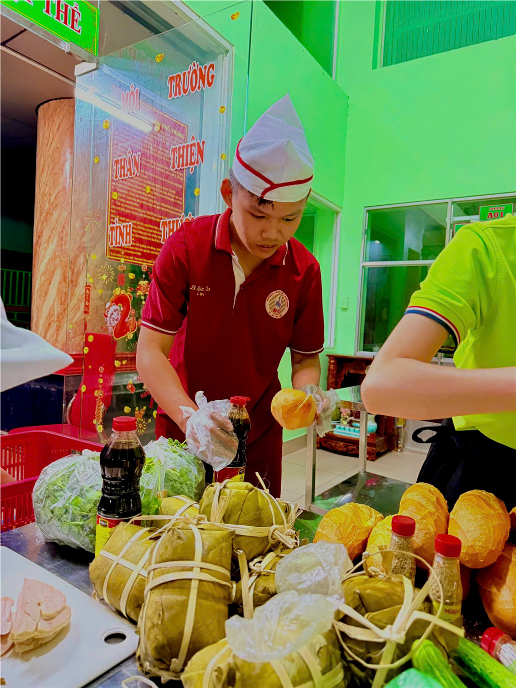 Nằm trong chương trình "Bữa sáng yêu thương", tập thể giáo viên và học sinh trường THCS - THP Bắc Sơn đã cùng nhau vào bếp, tự tay tạo thành những ổ bánh mì thơm phức để gửi tặng đến những người dân đang hối hả với mưu sinh trên đường phố.
